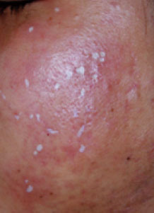 ニキビが膿疱化(膿が溜まる状態)してしまうと治癒後は、皮膚表面がクレーターのように陥凹してしまい、ニキビ痕として残ります。このような状態を完全に元のようなツルツルの表面に戻すのは、ほとんど不可能に近いといわれていますが、根気よく効果的な施術を継続していけば、かなりの回復を期待することが出来ます。